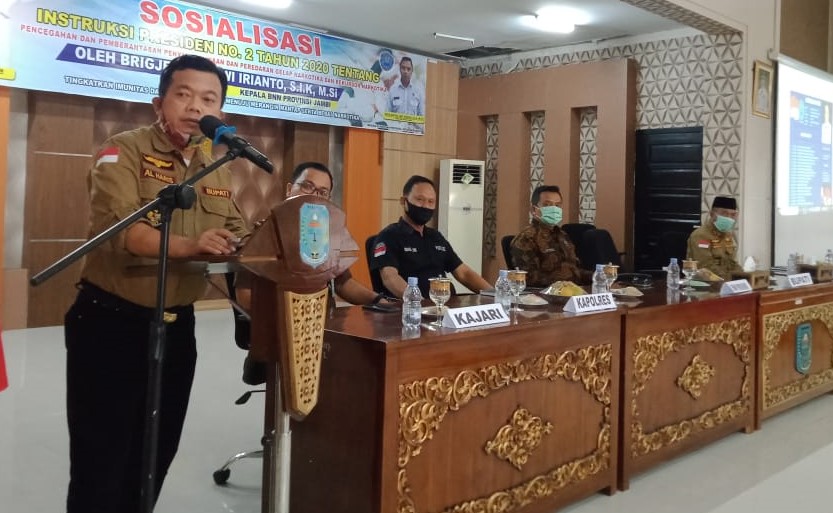 Hal tersebut ditegaskan Bupati Merangin H Al Haris ketika membuka acara Sosialisasi Instruksi Presiden nomor 2 tahun 2020, tentang Pencegahan, Pemberantasan, Penyalahgunaan dan Peredaran Gelap Narkotika (P4GN), Rabu (24/6).