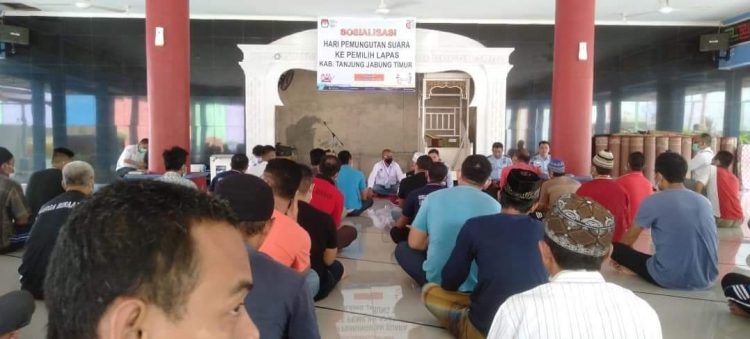 LINTAS.CO.ID – Komisi Pemilihan Umum (KPU) Tanjung Jabung Timur (Tanjabtim) menggelar sosialisasi Hari pemungutan suara ke pemilih Lembaga Pemasyarakatan (Lapas) Kelas II B Narkotika Muarasabak Tanjabtim, Senin (30/11/2020).