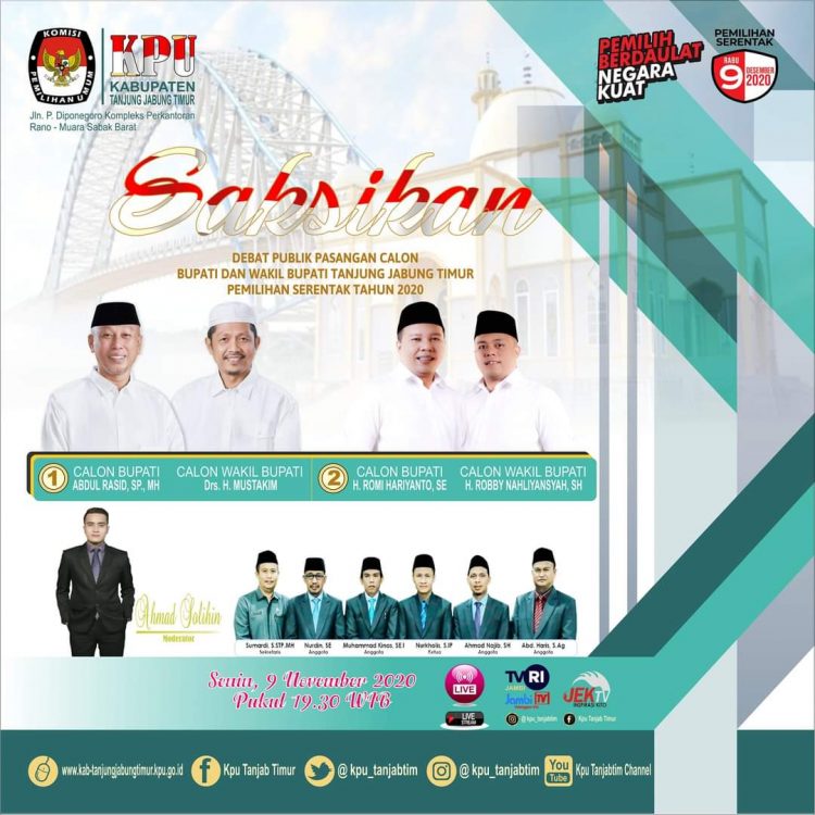 Rencananya pada tanggal 9 November 2020 tersebut pasangan calon akan berdebat untuk menyampaikan visi-misinya ke masyarakat Tanjabtim.