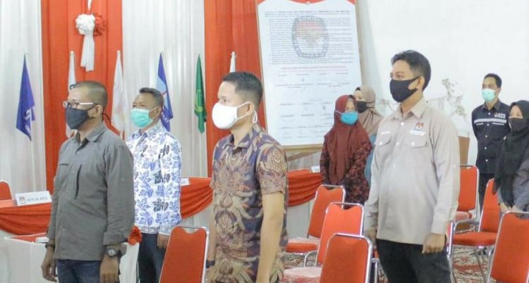 Rapat koordinasi dilaksanakan bersama tim LO/Kampanye dari masing-masing Pasangan calon baik Pilgub maupun Pilbup di ruang rapat KPU Tanjabtim, Senin (14/12/2020).
