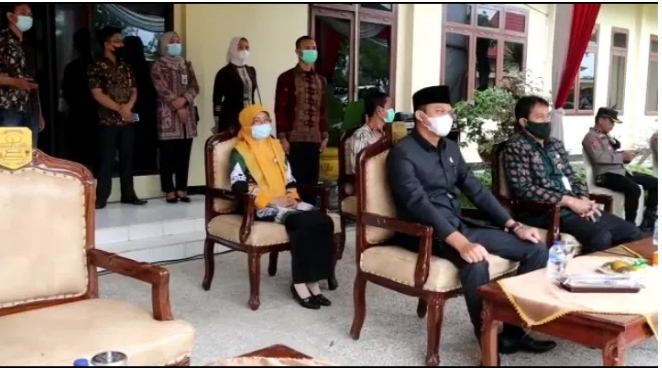 Muaro Jambi – Ketua DPRD Muarojambi Yuli Setia Bakti menghadiri pengukuhan Polsek Sungai Gelam dan Bahar Selatan di Mapolres Muarojambi, Kamis (8/4/2021).