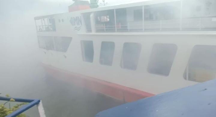 Kapal motor penumpang (KMP) Gunsa 8 terbakar di perairan Banyuasin, Sumatera Selatan (Sumsel). Seluruh penumpang kapal sebanyak 86 orang selamat dari insiden tersebut.