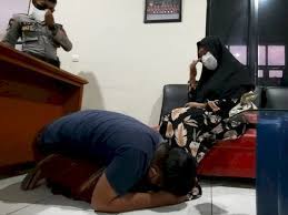Ia terus-menerus meminta maaf kepada sang ibu yang histeris saat menjemputnya di ruang Satreskrim Polres Tasikmalaya.