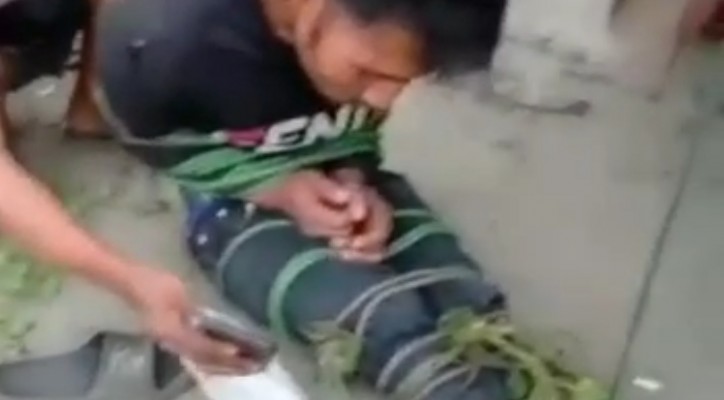 RH yang diamankan oleh pengemudi di area sekitar pun sempat diikat menggunakan tali tambang kecil, karena mengamuk dan mencoba melarikan diri.