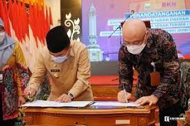 Jambi – Gubernur Jambi, Dr.H.Al Haris,S.Sos.,M.H., menyatakan, hibah tanah dari Pemerintah Provinsi Jambi kepada Badan Kepegawaian Nasional (BKN) RI merupakan wujud sinergitas yang baik dalam melaksanakan program pelayanan kepegawaian dan pembangunan sumber daya manusia. Hal tersebut dinyatakan Al Haris pada Penandatanganan Nota Perjanjian Hibah Daerah (NPHD) dan Berita Acara Serah terima (BAST) Hibah Tanah dari Pemerintah Provinsi Jambi Kepada BKN RI, bertempat di Auditorium Rumah Dinas Gubernur Jambi, Selasa (18/01/2022). Pelaksana Tugas (Plt) Kepala BKN RI, Dr.Ir.Bima Haria Wibisana,M.S.I.S., secara langsung hadir dalam penandatanganan tersebut.