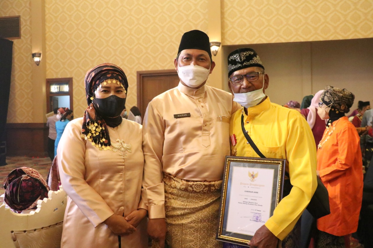 Pada kegiatan yang sama, juga dilaksanakan pemberian penghargaan seni dan maestro kepada tiga seniman Provinsi Jambi, salah satunya tokoh maestro seni tradisi dari Kabupaten Tanjung Jabung Barat, Zainuddin yang merupakan pewaris musik kulintang perunggu. (adv)