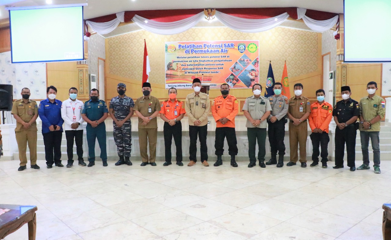 TANJABARAT – Mewakili Bupati Tanjab Barat Sekretaris Daerah, Ir. H. Agus Sanusi M. Si hadiri pembukaan “Pelatihan Potensi Pencarian dan Pertolongan di Permukaan Air Angkatan XIII” yang diselenggarakan oleh Badan Nasional Pencarian dan Pertolongan (Basarnas) Provinsi Jambi di Balai Pertemuan Kantor Bupati. Selasa (15/2/2022)