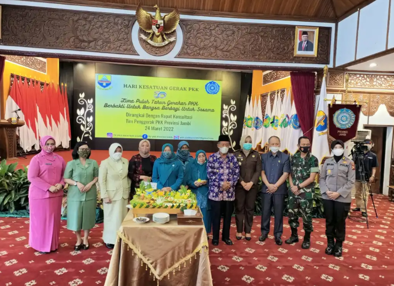 Jambi – Wakil Gubernur Jambi Drs.H.Abdullah Sani.M.Pdi, menghadiri peringatan hari kesatuan gerak (HKG) PKK ke 50 Tahun 2022 tingkat Provinsi Jambi, berlangsung di auditorium rumah dinas gubernur Jambi, Kamis (24/03/2022).