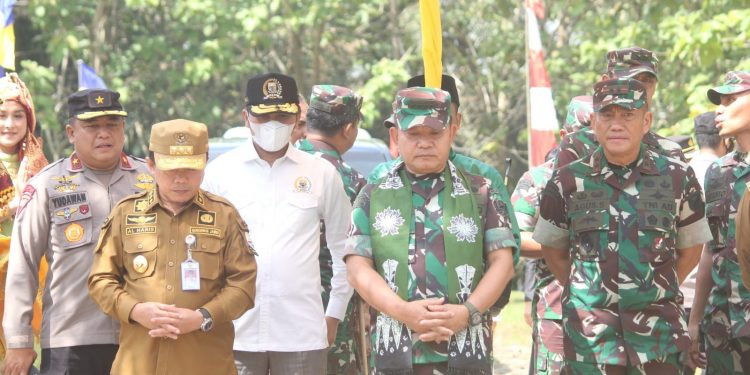 Tebo – Gubernur Jambi, Dr.H.Al Haris,S.Sos.,M.H., secara langsung mendampingi Kepala Staf Angkatan Darat (KASAD) Jenderal TNI Dr.Dudung Abdurachman,S.E.,M.M., melakukan kunjungan kerja ke Provinsi Jambi dalam rangka memantau daerah rawan Kebakaran Hutan dan Lahan (Karhutla) di Provinsi Jambi dan melaksanakan launching Pemanfaatan Lahan di Wilayah Kodam II/SWJ untuk ketahanan pangan, bertempat di Kompi Senapan B Desa Tebing Tinggi, Kecamatan Tebo Tengah Kabupaten Tebo, Senin (18/07/2022).