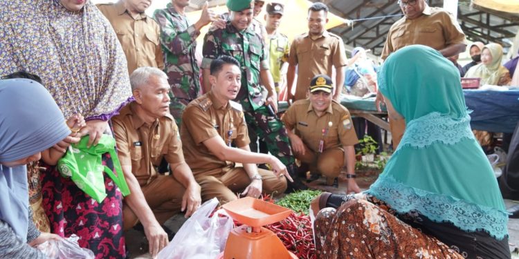 Pj. Bupati Bachyuni secara langsung berdialog dengan pedagang terkait harga beberapa barang kebutuhan bahan pokok ke pedagang di Pasar Senin Muhajirin.