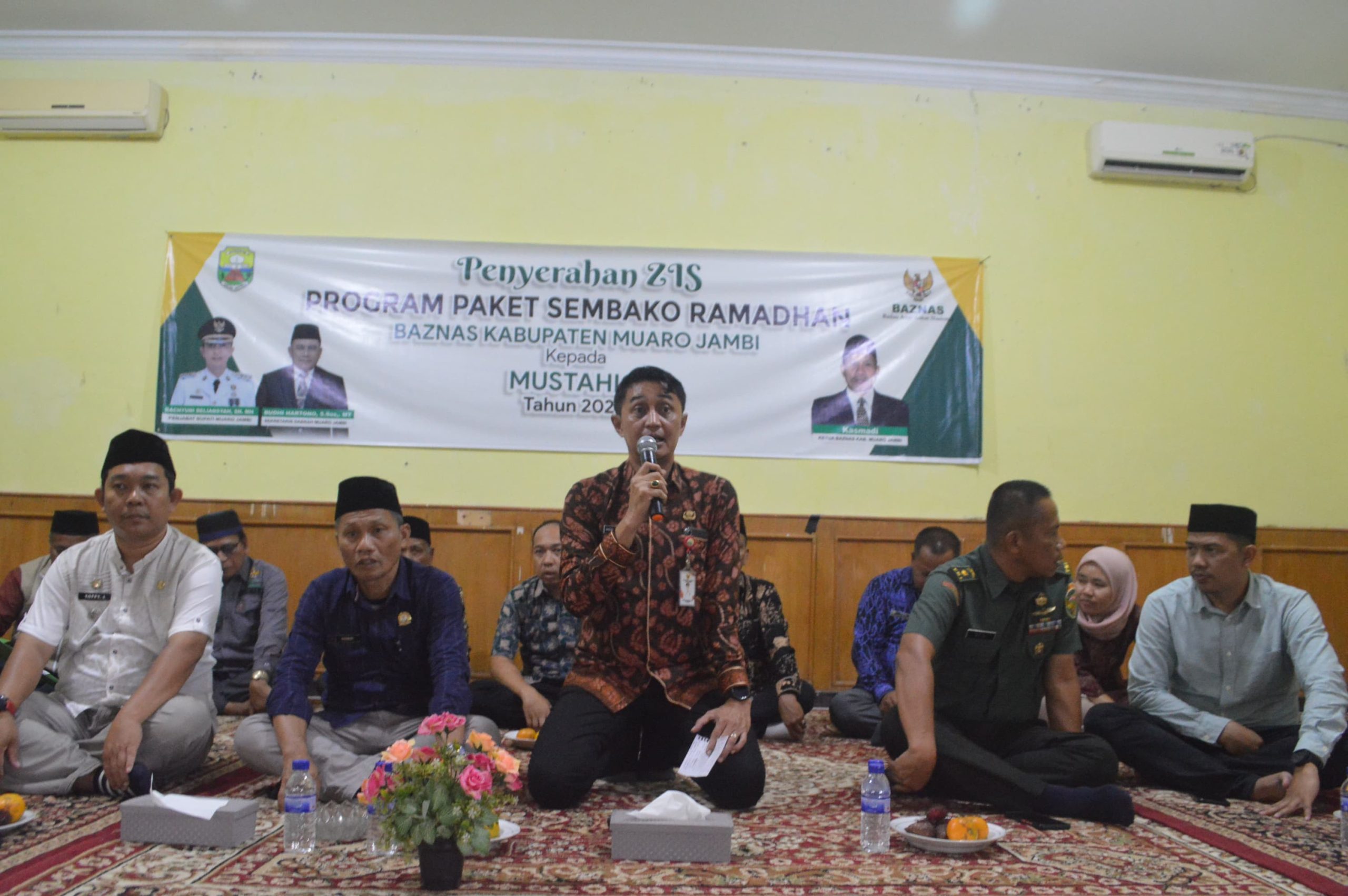 Muaro Jambi – Penjabat Bupati kabupaten Muaro Jambi Bahcyuni Deliansyah SH MH menghadiri langsung dalam Acara penyerahan program paket Sembako Ramadhan BAZNAS kabupaten Muaro Jambi,yang bertempat di kantor Camad maro sebo .Jumat (8/03/2024).